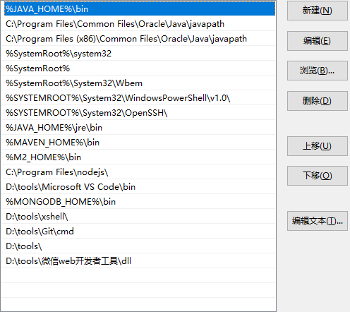 点击新建,值为:%JAVA_HOME%\bin,然后上移至最顶端